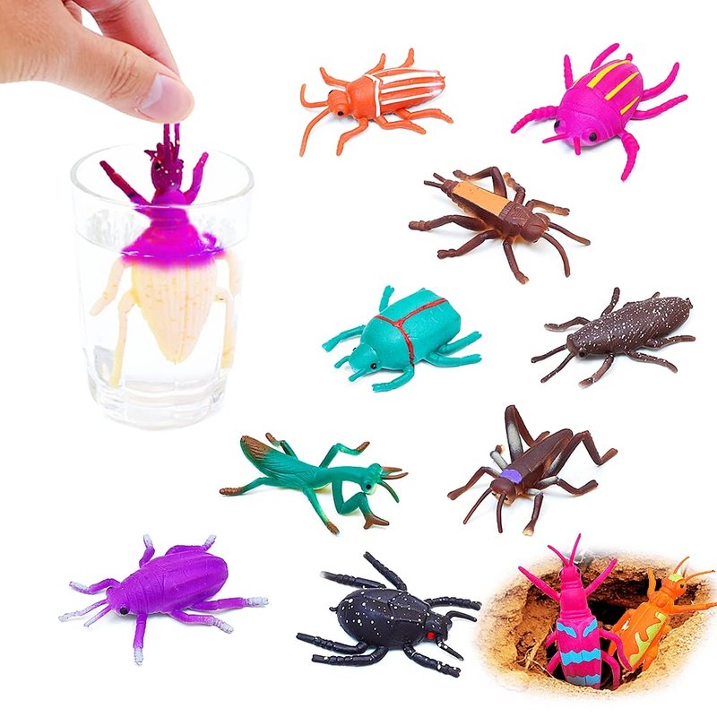 A random combination of 10 vivid insects with bright colors and thermochromism.These insect toys can be used as cake decorations, classroom rewards and party favor for toddlers aged 3 and above.