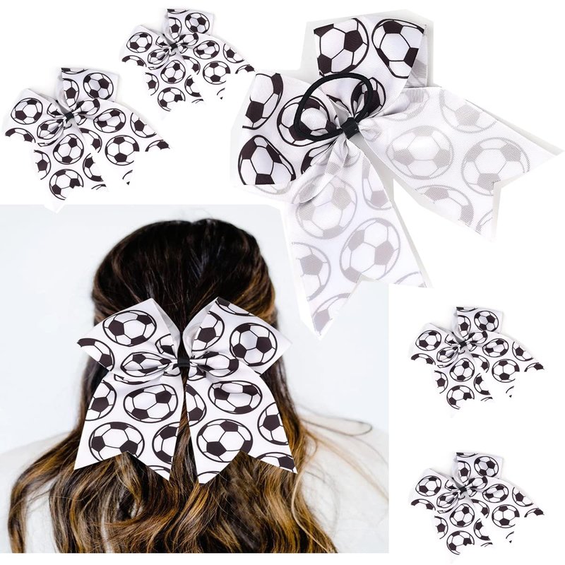 10Pcs Cheer Bows Hair Bow Ponytail Holder Elastic Band for Cheerleading Cheerleader Sports Team Activities (Soccer)