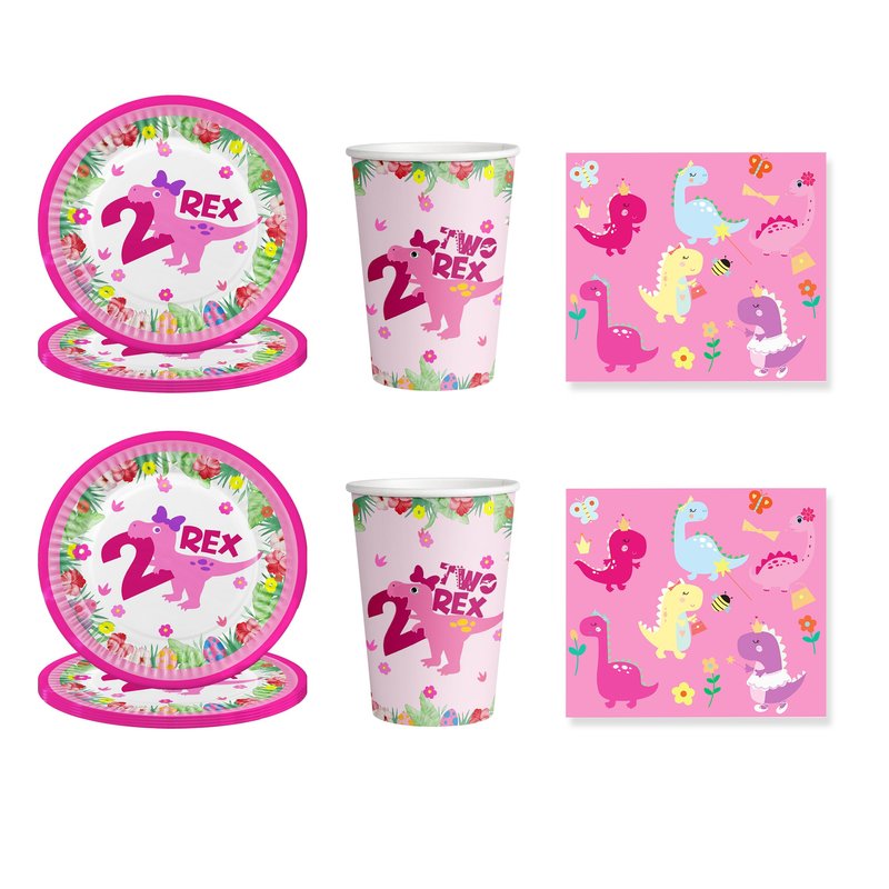 10pcs Dinosaur 2 year old plate paper towel plus tablecloth,Two Rex Birthday Decorations Girl,Dinosaur 2nd Birthday Party Supplies Girl,Pink Dinosaur Party Supplies 2nd Birthday.