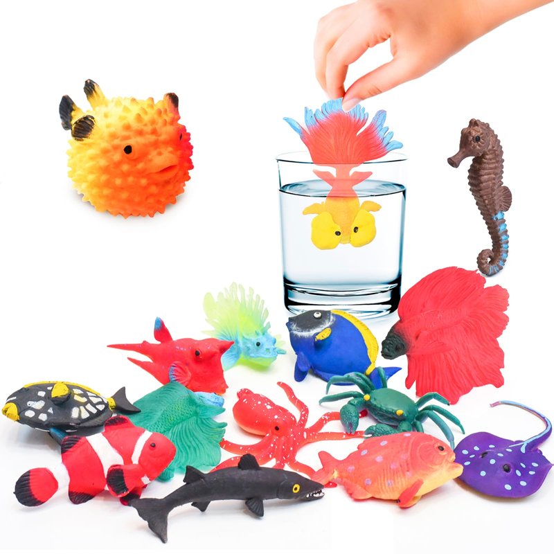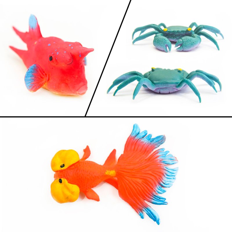 - Color Changing Toys: These sea creatures toys for kids magically change colors in warm water above 91.4 F(33 C). When placed at room temperature or refrigerated, fish toy returns to its original color.