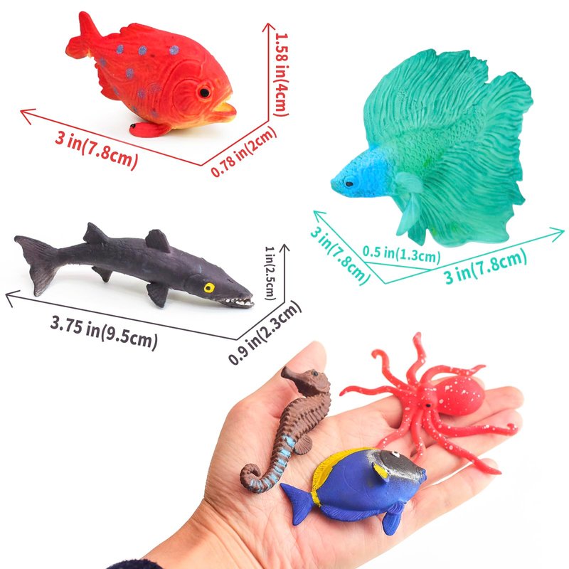 These fish toys animal figures can be used as cake decorations, classroom rewards and party favor for toddlers aged 3 and above.