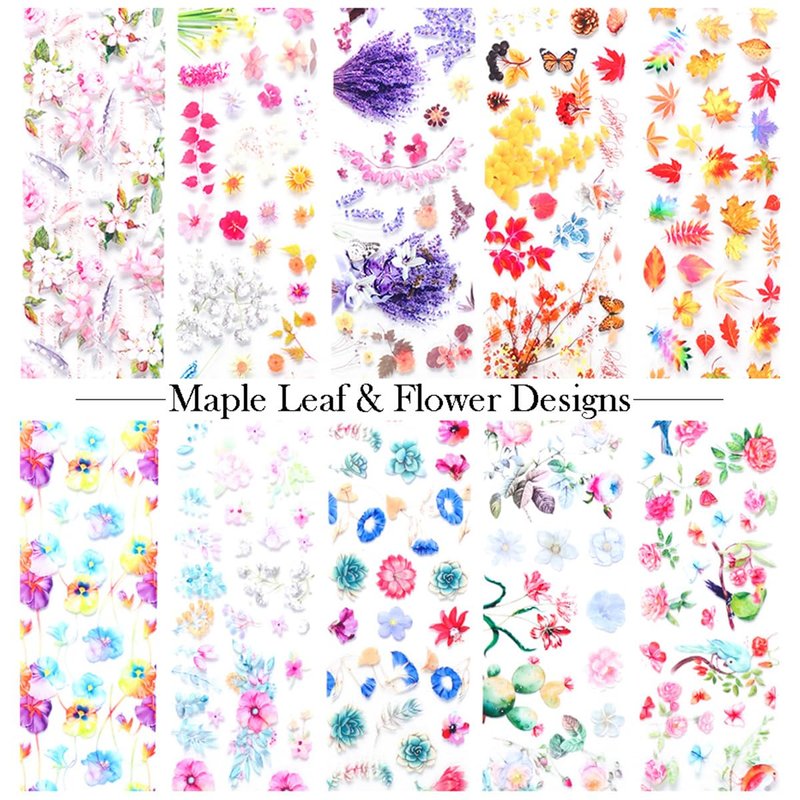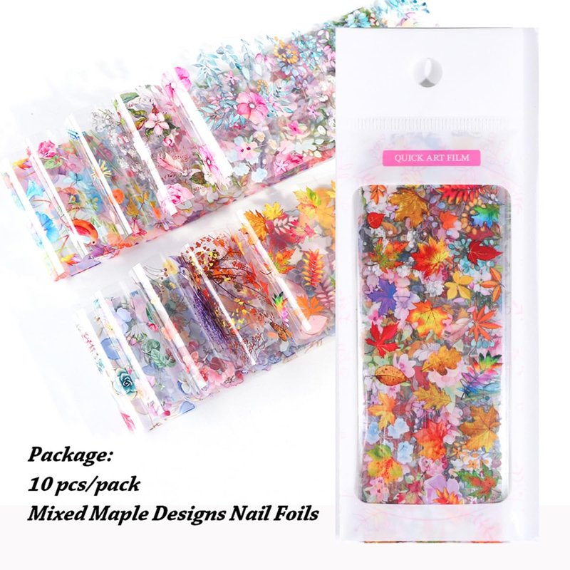 • Quantity: You will receive 10 pcs flower nail foil transfer stickers,maple leaf foils transfers decals small blossom nail art glitter fashion art beautiful patterns ,unique nail art decoration accessories set.