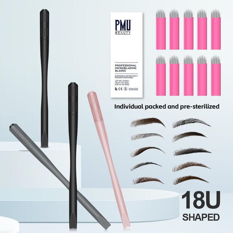 - 10pcs Microblade Pen Holder Per Box: Each Eyebrow Microblading Pen is single packed with 2 pcs pigment sponge pad, and including 10 pcs pre-sterilized 18 Pins U-Shaped nano blades. Professional microblading supplies perfect for designers, learners and beauticians who work or have interests in eyebrows.