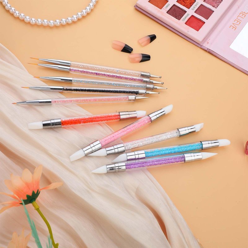 - 【High-Quality Material】Our durable and reliable nail art pens are made of high-quality materials, including a clear plastic tube decorated with colorful crystal rhinestones inside, a silver metal handle, and a gentle silicone tip that is not easy to deform or corrode.