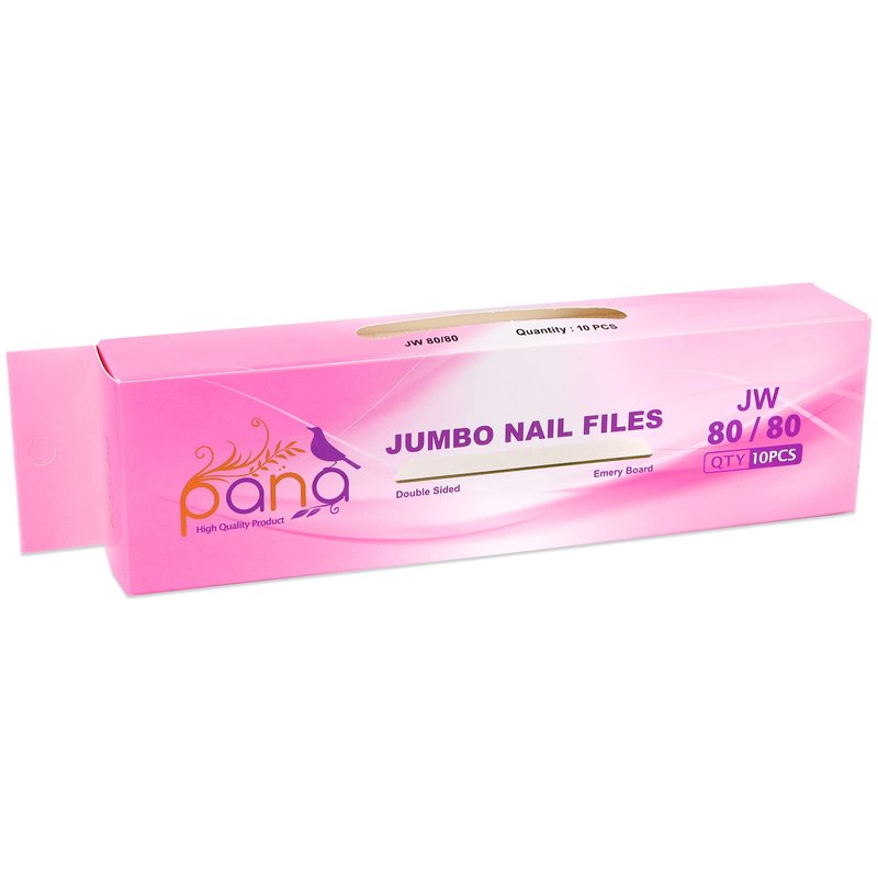 - PANA Jumbo Nail Files has a 80/80 grit size for a finest coarse to outline and manuever with precision around the nails of medium thickness. Every nail tech knows the most important part of a manicure is the prep! This buffer is an essential to every nail kit, whether you DIY or make a stop at the salon. Made with water-resistant sanding, this 80/80 grit is doubly attached, making it durable and precise enough to file, buff acrylics, gels or natural nails.