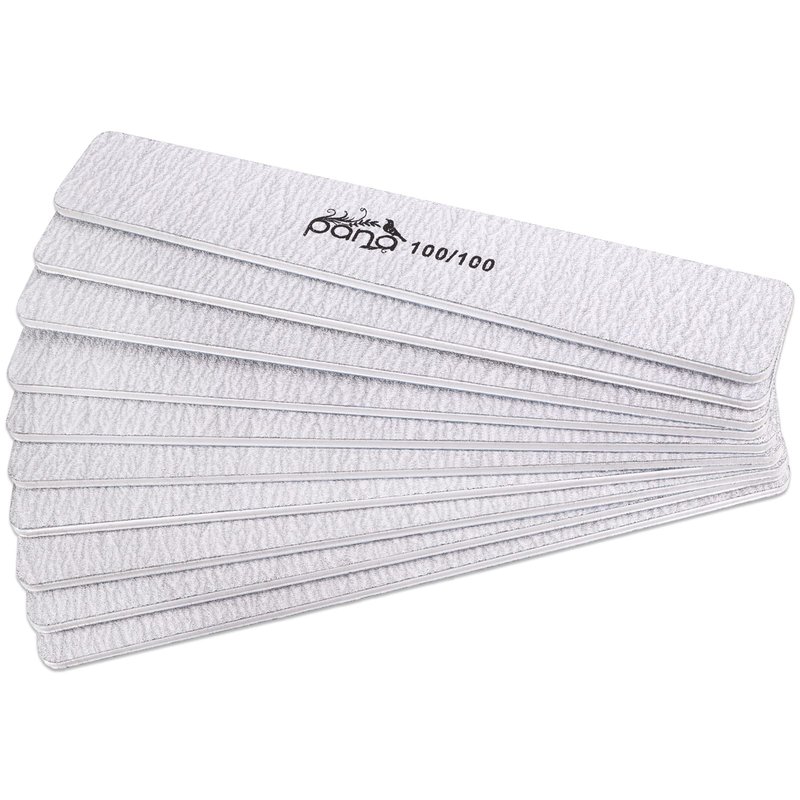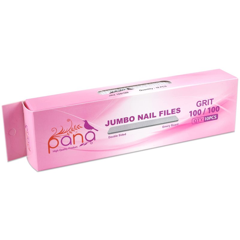 - PANA Jumbo Nail Files has a 100/100 grit size is used the most common file to use when shaping and shortening acrylic nails. Although it is best to use on acrylic nails, 100 grit files may be used on natural nails (depending on the nails thickness). The kind of nail file you choose can make or break your file job, so this versatile PANA nail file is superb for preventing tears and splitting in the nail, while creating a smooth surface.