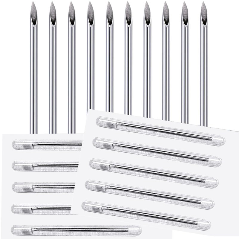 - 316L Surgical Steel Body Piercing Needles 08 Gauge (3.2mm) Disposable Sterile Piercing Needles for Ear Nose Belly Nipple Tongue Lip Piercing 8G - Pack Of 10