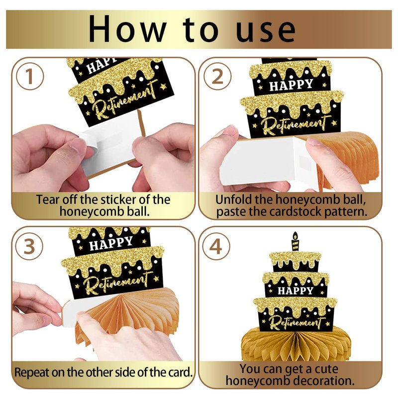- The easiest way to use: Step1, tear off the sticker of the honeycomb ball. In the second step, glue the honeycomb ball to the fixed area on the card. Step 4, finally put it on the table. It's easy and you can save a lot of time.