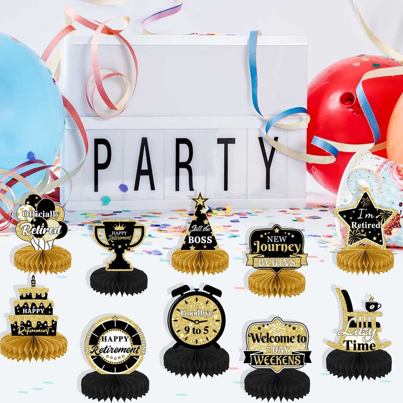 - Sufficient Package: You will get Retirement theme honeycomb centerpieces, there are 10 different patterns, cool designs, each one can meet your decoration needs, , and can be used Coordinate with diverse table decoration patterns.
