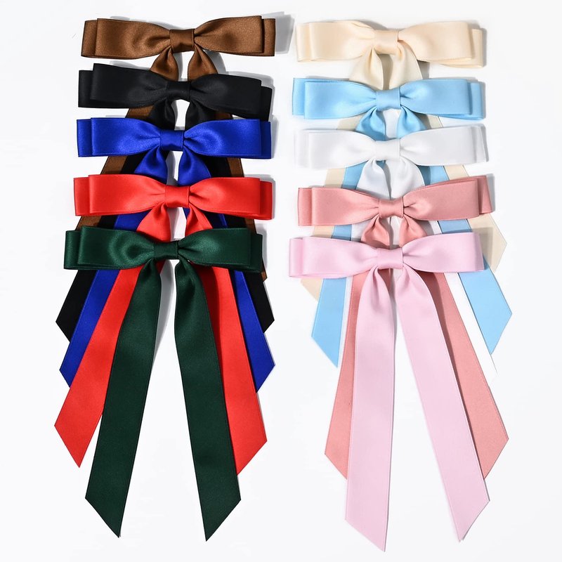 AILEAM’s Classic big 10pcs Silky Satin hair bows ribbon clip