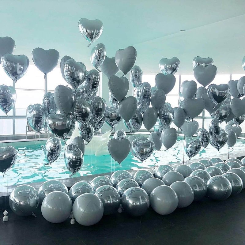 - Package Included:10Pcs 18 inch Silver Heart Balloons (uninflated) + 1pcs Straw +1pcs 32 foot Ribbon Roll