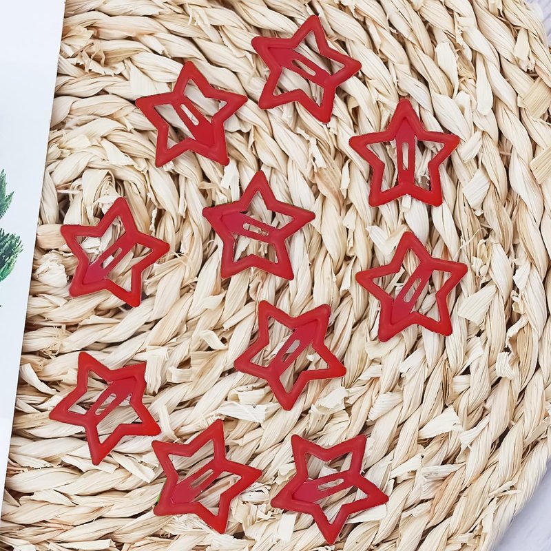 10PCS Star Snap Hair Clips Y2K Star Hair Clips Red Metal Hair Barrettes for Girls Women, Valentine's Day Cute Y2K 2000s Star Hairpins Headpieces Non-Slip Hair Accessories for Thin Thick Hair