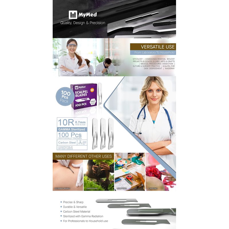 - ⭐ WHILE YOUR OTHER DISPOSABLE SCALPEL BLADES #10R may be too dull, not sharp enough, not sterile, flimsy or difficult to use, MyMed brings a HIGH QUALITY CARBON STEEL scaple blade 10r that is SAFE and EASY to use. This means a YOUNGER BRIGHTER face for you and lots of other skin problems solved.