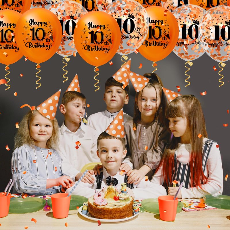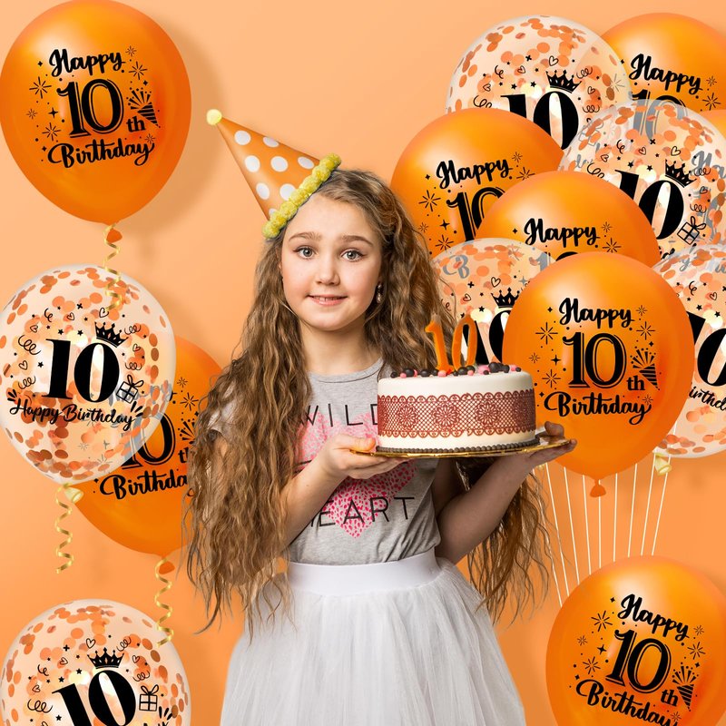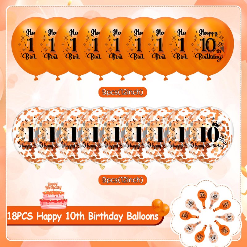 • 🍊【WHAT YOU WILL Get】You will get 18 pcs 12 inches orange "Happy 10th Birthday" latex balloons in 2 colors, including 9 pcs orange 10th birthday balloons, 9 pcs orange confetti 10th birthday balloons, adding more fun to you or your kid's birthday party