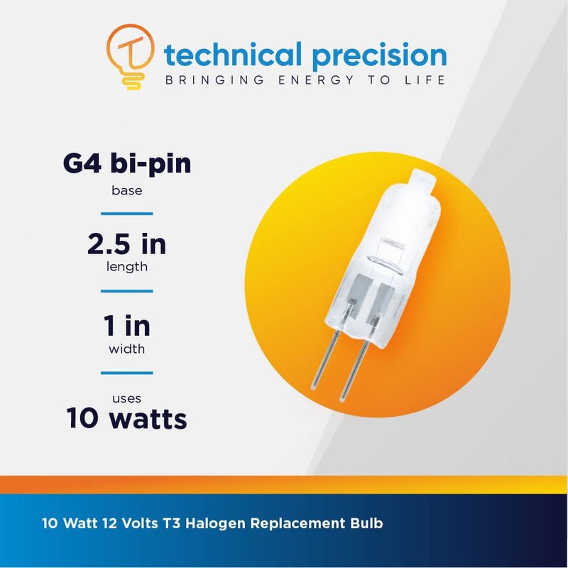 - WHAT YOU GET - 1.25 inches overall length, 10 watts, 12 volts, 0.83 Amp, T3 halogen bulb with G4 bi-pin base (4mm between pins), clear finish - 1 Pack