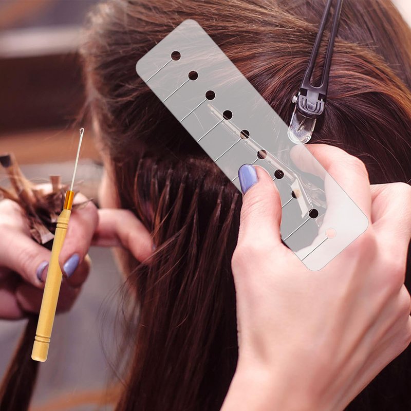 11 Pcs Heat Shield Guards for Hair Extension with Hook Hair Extension Tool, Multi Hole Shield Spacers Fusion Glue Protector Templates, Pulling Needle for Hair Extensions