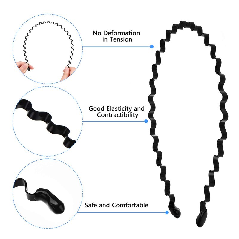 This hairband is safe and practical, both ends of the metal headband are wrapped with protective cover, causing no harm to your head. In addition, wave shape design makes the headband stay in place firmly, no worry about sliding down.
