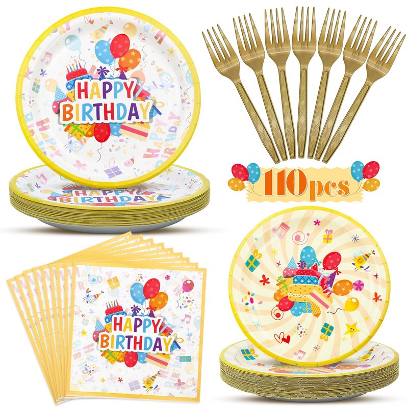 110 PCS Birthday Party Supplies - Disposable Paper Plates Happy Birthday Plates and Napkins for Birthday Party Decorations,Tableware Set for Party Favors - Serves 25 Guests