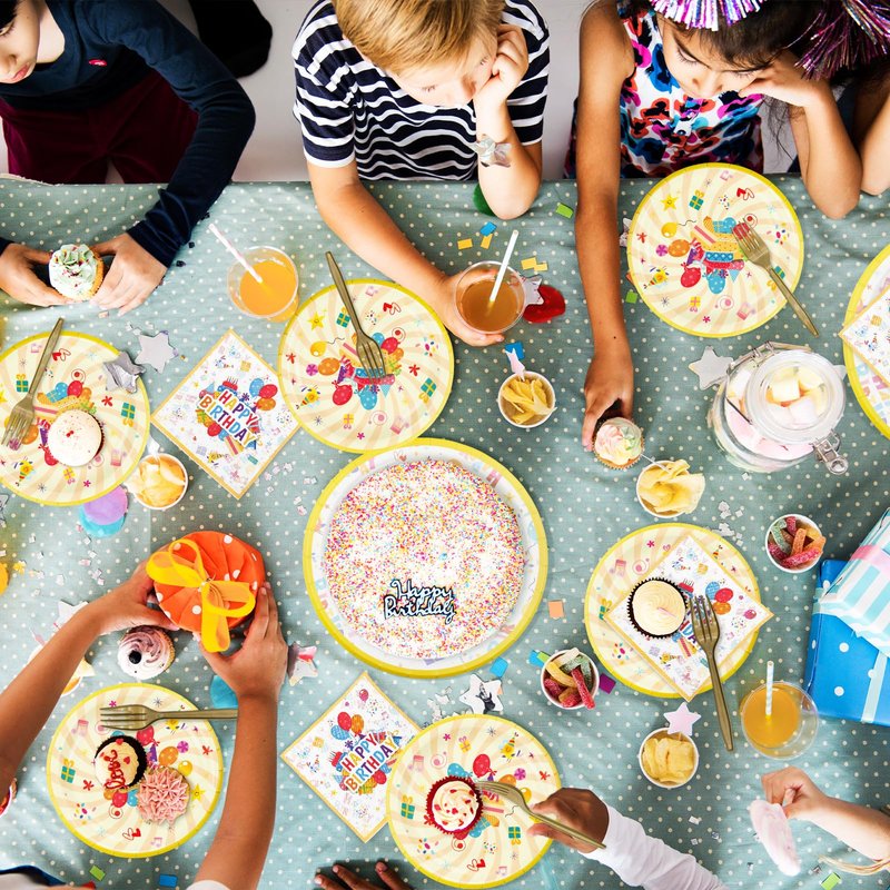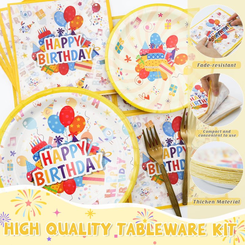 - NO CLEANING REQUIRED & SAVES TIME - These disposable tableware sets are the perfect addition to your birthday party decorations,the paper plates and napkins can be discarded after use,saving you time on cleaning,perfect for a happy birthday party,you can spend more time with your family and friends