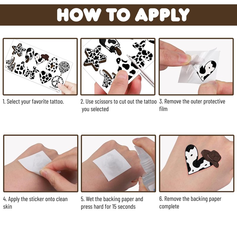 - 🐄COW PRINT PARTY: These COW PRINT temporary tattoos will make your party pop! Pick from a ton of fantastic designs including colorful, captivating, cute, and funny cow print images. Invest in your gear right now to make your event more exciting!