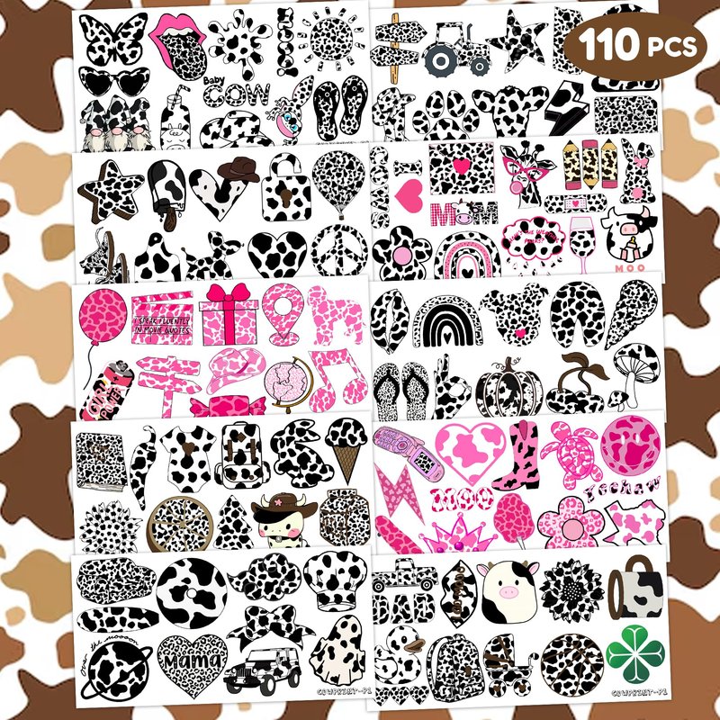 - 🐮COW PARTY SUPPLIES: Hi everyone! An amazing set of 10 sheets including 110 a size of 6.1 by 3.1 inches. These COW PRINT tattoo pieces will be sent to you quickly, place your order to get these temporary tattoos.