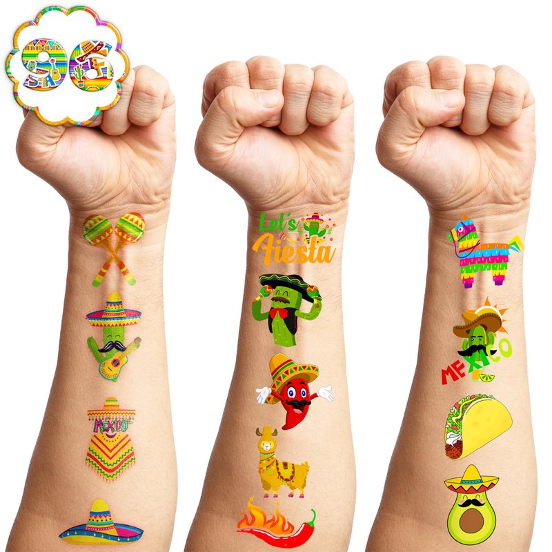 - Widely used: Mexican Fiesta Taco Mexico Cinco De Mayo Pinata Temporary Tattoos pieces are suitable for many occasions such as birthday party supplies, party decorations, party favors, party bags, DIY decorations, pool and the beach or gift. Temporary tattoos are the best party favors and goodie bags fillers ever for any kind of celebration!