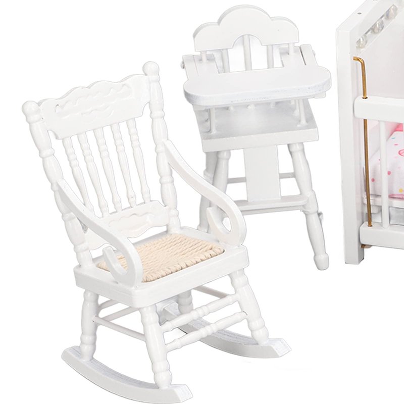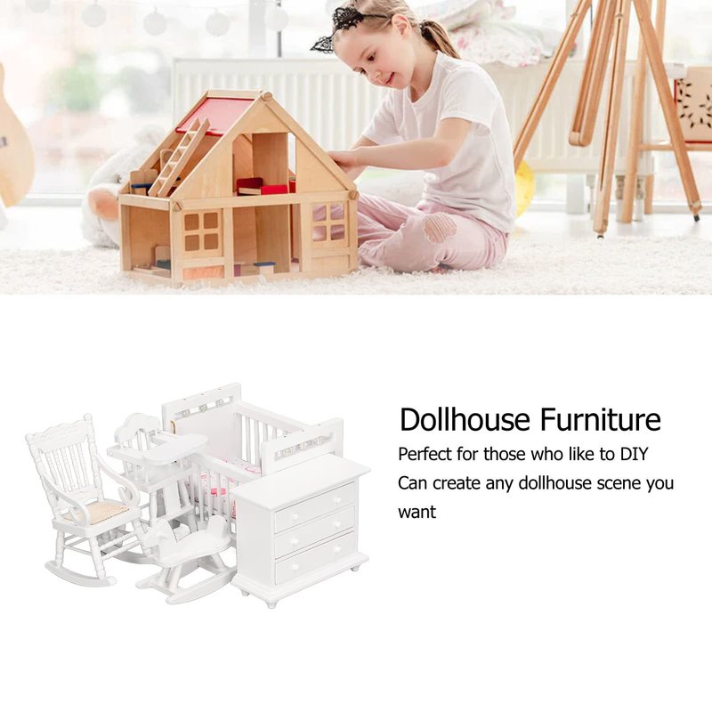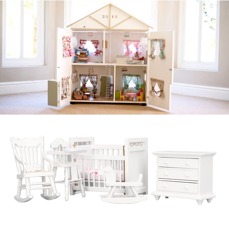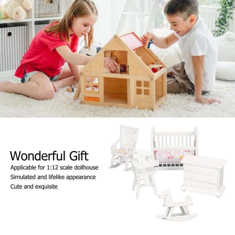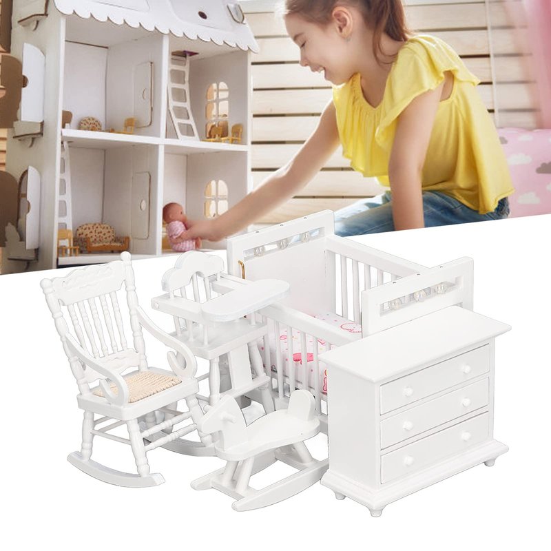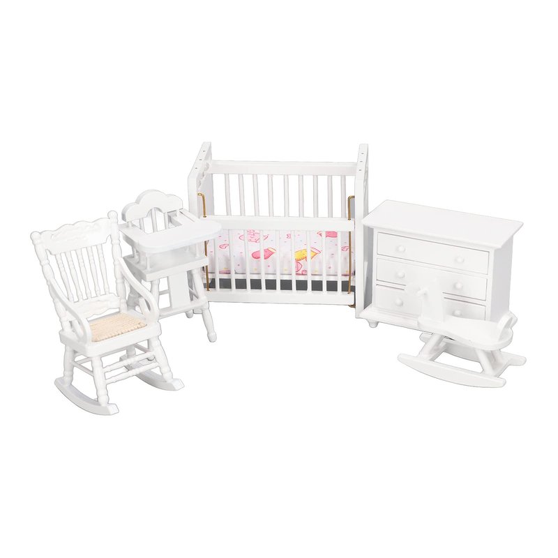 1:12 Dollhouse Baby Furniture Model Set Miniature Baby Crib Rocking Horse Chair Cabinet Decoration Accessories