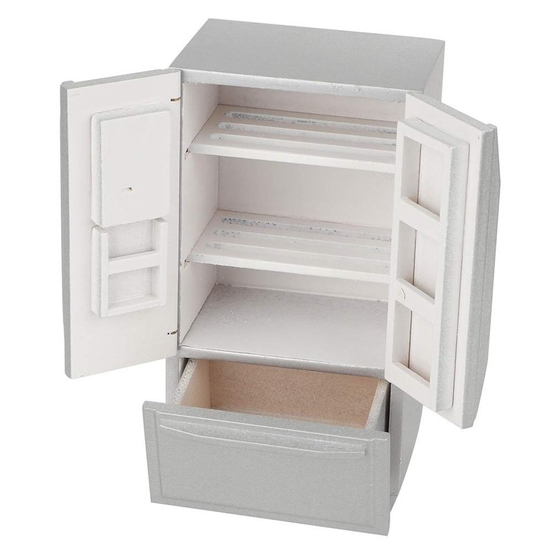 1:12 Dollhouse Miniature Fridge, High Simulation Kitchen Prop Delicate Model Dollhouse Decor, Fridge Refrigerator Accessories, Exquisite Workmanship (Gray)