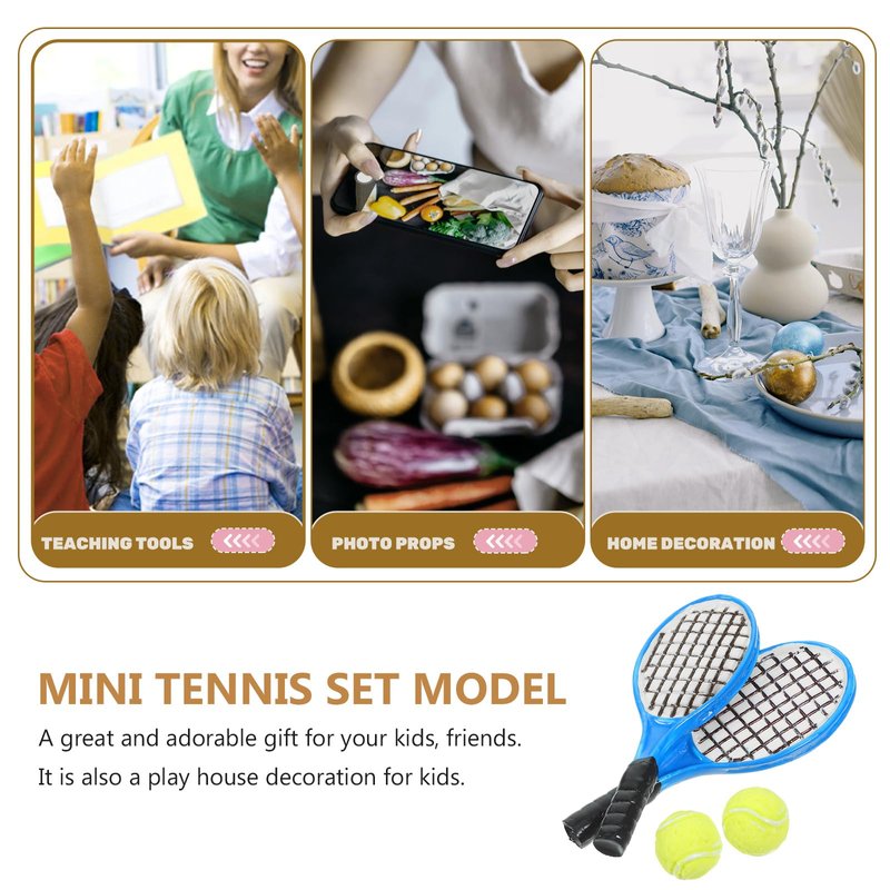 1:12 Miniature Tennis Racket and Ball Set Dollhouse Decoration Accessories 4pcs