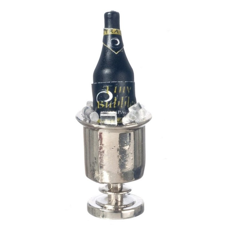 - Dolls House Miniature Pub Dining Accessory Champagne on Ice in Silver Bucket