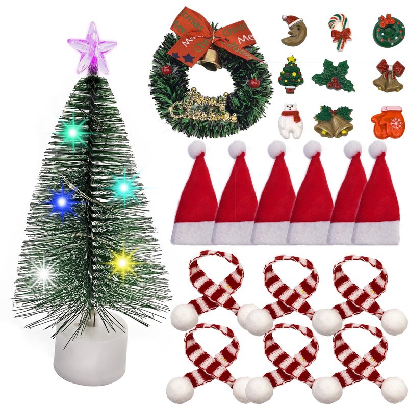 - Complete Christmas Set: Includes an 8-inch pre-decorated mini Christmas tree, a miniature Christmas wreath, 9 mini resin Christmas figurines, and 12 festive mini hats and scarves – perfect for enhancing your dollhouse holiday décor.