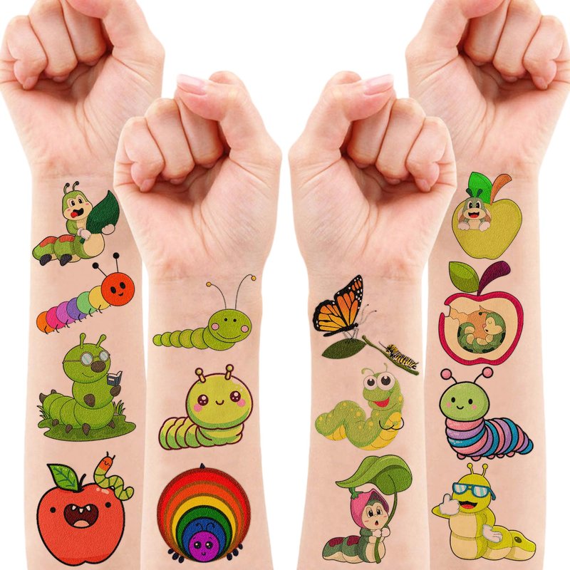 - 🐛 FUN GIFT FOR CATERPILLAR BIRTHDAY PARTY DECORATIONS SUPPLIES: CATERPILLAR TATTOOS themed party, outdoor parties, birthday parties, school rewards and other party events. In addition, they help children recognize caterpillar. CATERPILLAR TATTOOS are also interesting and lovely gifts for your children. Complement your unique collection with a caterpillar tattoo!