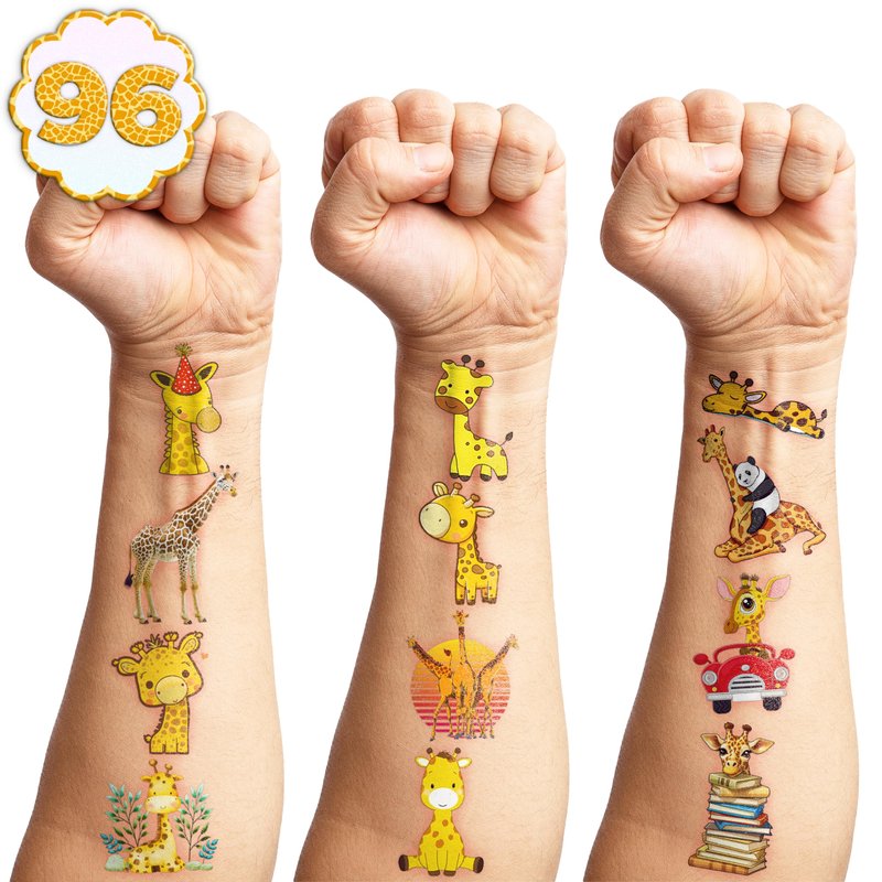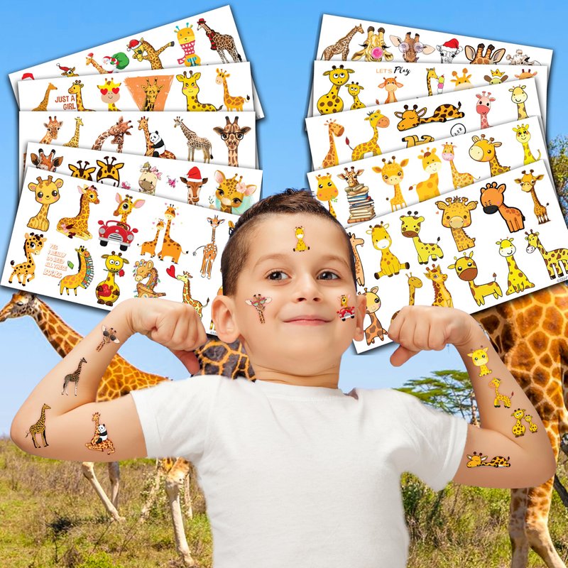 - 🦒 FUN GIFT FOR GIRAFFE BIRTHDAY PARTY DECORATIONS SUPPLIES: GIRAFFE TATTOOS for themed party, outdoor parties, birthday parties, school rewards and other party events. In addition, they help children recognize Animal. GIRAFFE TATTOOS are also interesting and lovely gifts for your children. Complement your unique collection with a giraffe tattoo!