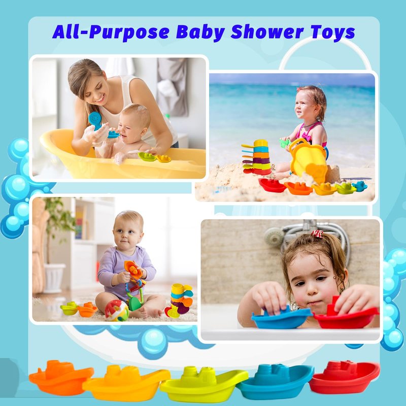 - Package include:5 pcs plastic stack boats and 6 pcs plastic stacked bath spoons.Kids love to use them during bath time to hold water,filter,stack,and make a great bathtub toy.