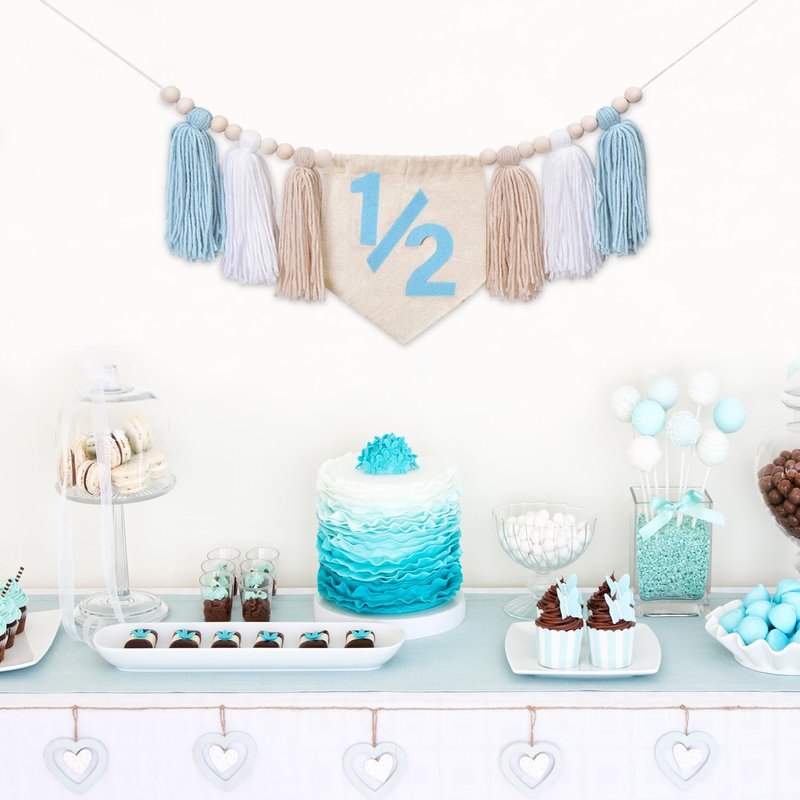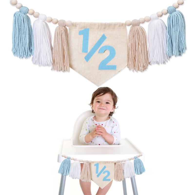 1/2 Birthday High Chair Banner - Dokuna Boys Half Birthday Party Decorations, Half Way to One Party Decorations, 1/2 Birthday High Chair Garland (Blue)