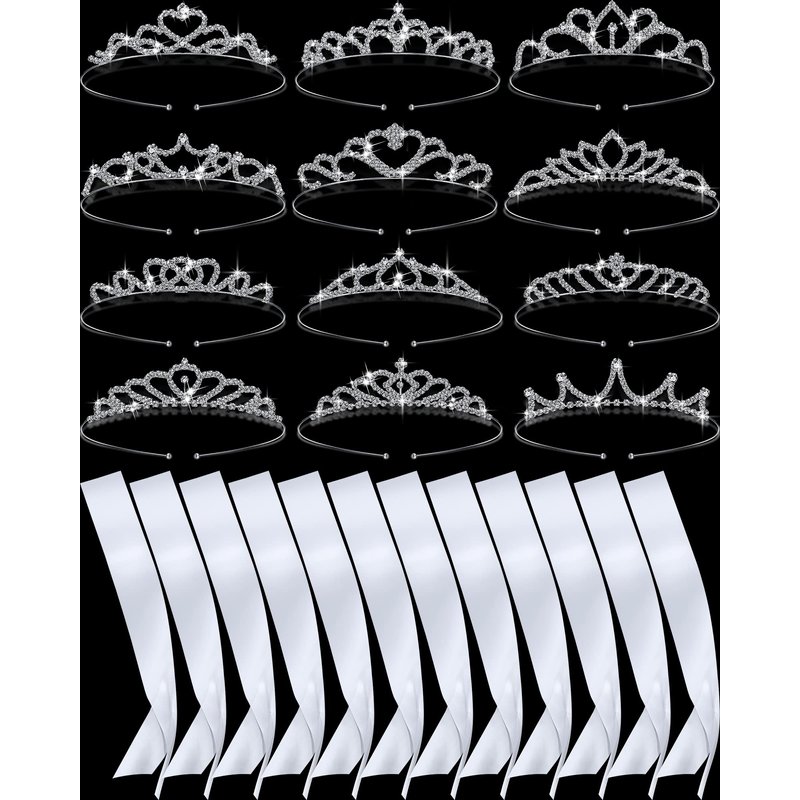 - Many Sets: the package comes with 12 pieces of white blank sashes and 12 pieces of rhinestone crowns for women in different styles, sufficient quantity and styles for you to match, replace and share freely