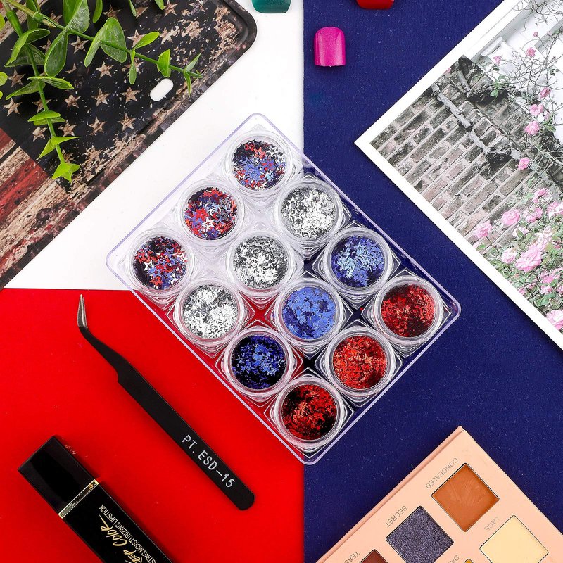 - What you get: the package contains 12 small boxes of 4th of July Independence Day star nail sequins in diverse colors, including red, blue, silver, sufficient quantity and vibrant colors to meet your nails festival decoration needs, making your nails more chic