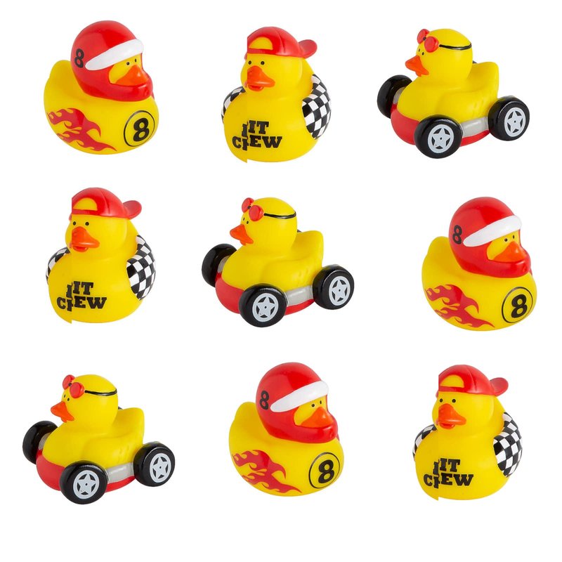 - 2-inch mini vinyl duckies perfect for decorations, award prizes, birthday favors, vacation bible school and even pinata filler. 3.5" Race to Win bookmarks.