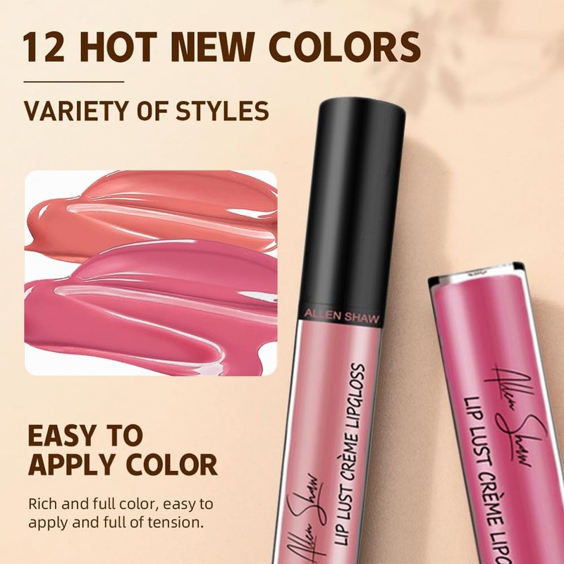 12 Color Cream Lip Gloss, Sexy Women Lipstick, Velvet Cream Lip Gloss, Moisturising Mirror Liquid Lipstick, Non-Fading, Non-Stick to Cup, Highly Pigmented Color, 2024 New Waterproof Lip Gloss(02#)