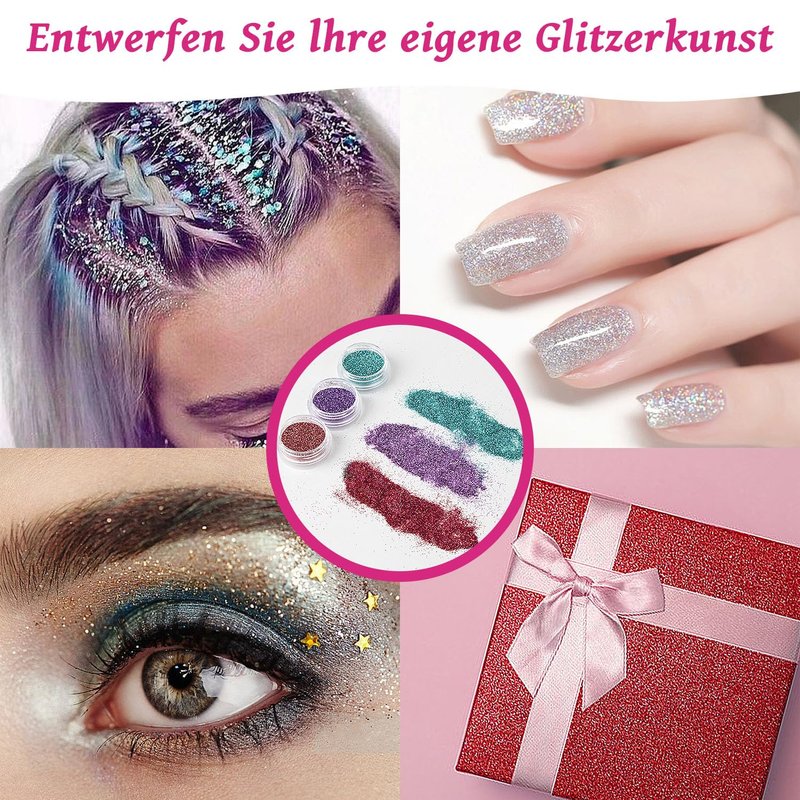 WIDE USE: The tattoo glitter can not only be used as glitter tattoo pattern, but also can be used for make-up, body painting, arm, body, nails, hair, COSPLAY, crafts, and also can be used for party invitations, greeting cards, gift boxes, scrapbooking and DIY decorations.