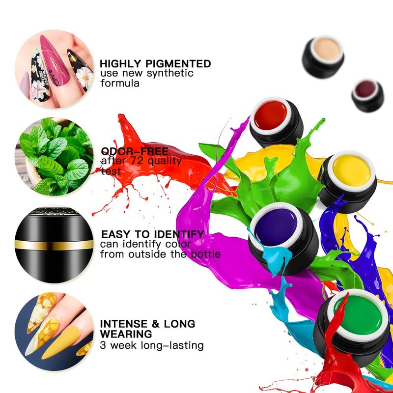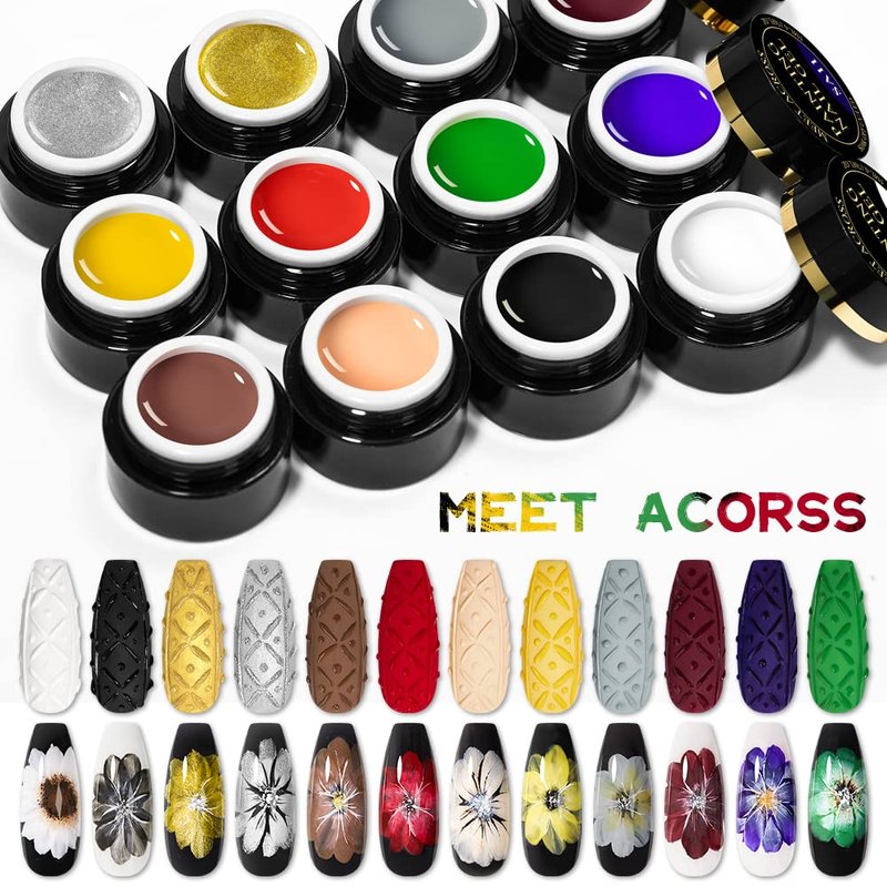 - ❤【HEALTHY & HIGH QUALITY】: The 12 colors gel paint set are made from 9 Toxin Free Ingredient, no bad smell, non-toxic which makes it safe and has low odor. With the excellent adhesion and viscosity, it will allows you to work with great precision on the most minute details of your nail art