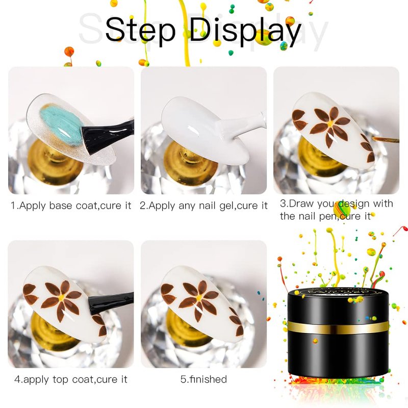 - ❤【SUPER LONG LASTING】: Used with the base gel and top coat, and cured under UV or LED lamp, the gel nail art painting gel will last 3 weeks or more time, and keep high-gloss wear. This gel painting kit is easy to use for painting, drawing, pulling lines, striping, etc