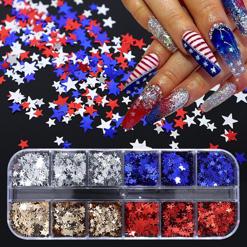 - 【 Design 】Independence day star design nail glitters art set are safe, environmentally friendly, non-polluting and harmless, does not cause any damage to the skin, even sensitive skin. Our holographic glitter sequins let you take home professional manicure.