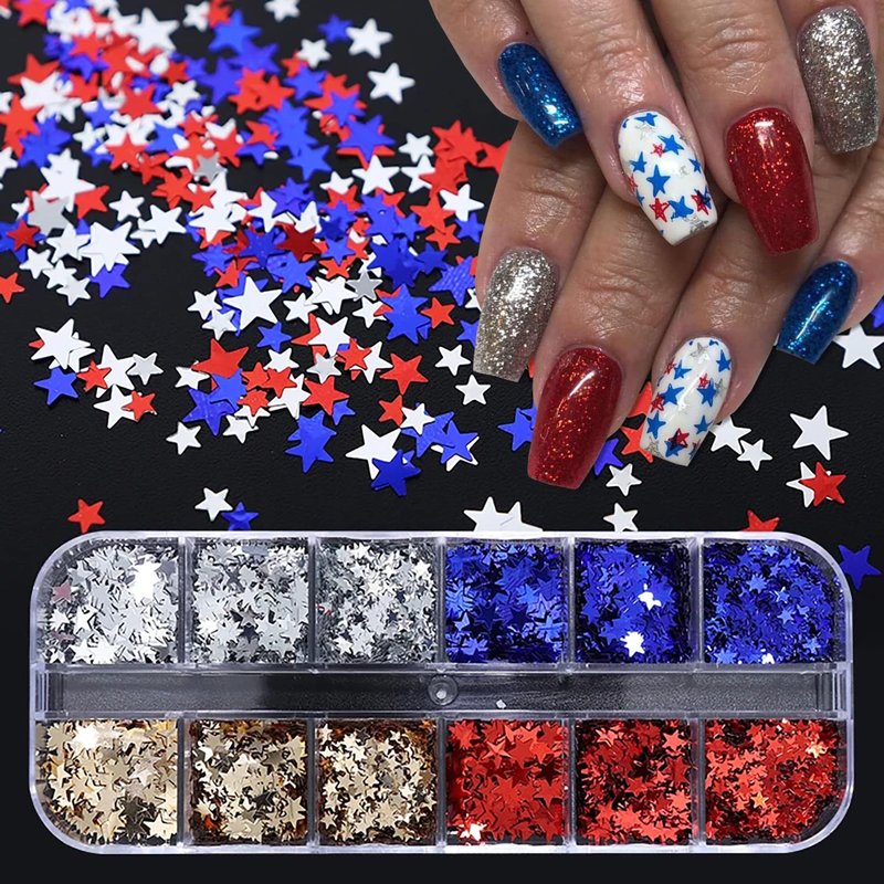 - Easy to Use: Suitable for professionals or beginners. independence day nail glitter perfect for natural or artificial nails. And can be combined with all UV gel nail polish, DIP powder, and all nail powder.