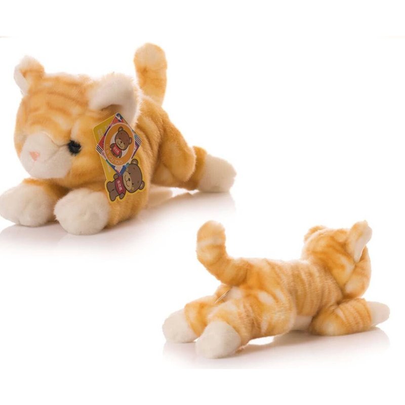 Simulated plush, with surface fuzz made of acrylic fiber material and a fluffy and soft feel. Acrylic fiber known as artificial wool, has the characteristics of softness, fluffinessl. The filling material is PP cotton, which is clean, white, soft, and elastic. It is not afraid of water washing and does not deform. The Cat total length is 12 inches, which is very suitable for children to grasp and easy to carry. Simulated design, giving the impression that it is a living animal.