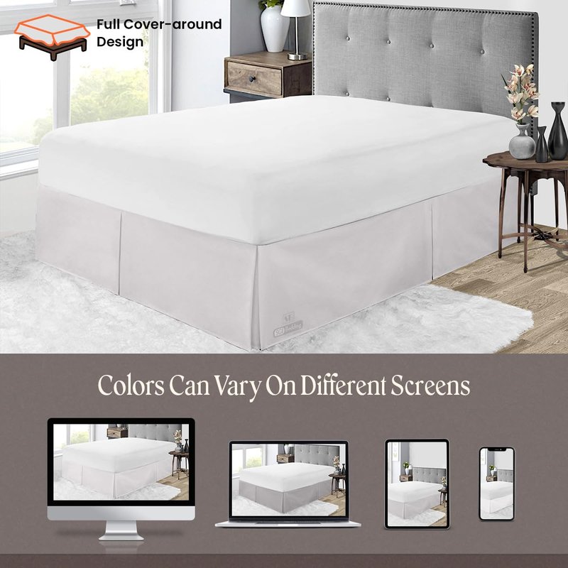 - Variety of Styles: Bedskirts come in a variety of styles, fabrics, and colors, allowing you to choose one that matches your bedding and room aesthetics, from traditional ruffles to modern tailored designs. Enjoy the timeless elegance of a Pleated bed skirt. Its pleated design adds a modern twist to your bedroom decor, and it's a great alternative to traditional dust ruffles. King size Bed Skirt Measurement : 78X80" Inch with 12 inch Drop Length.
