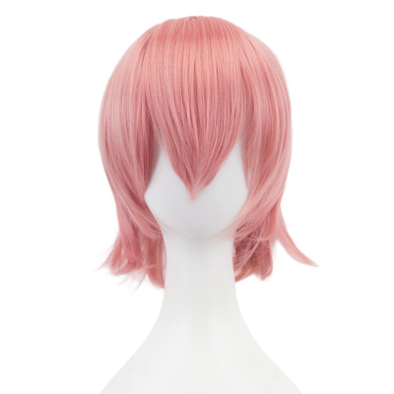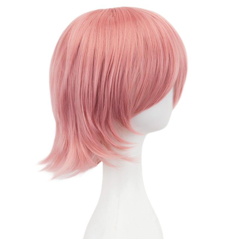 12 Inches Unisex Short Cosplay Hair Party BOB Wig with Bangs Halloween Costume Wigs (Pink)