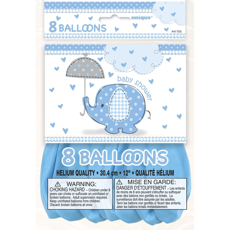 - Package of 8 Latex Blue Umbrellaphants Baby Shower Balloons