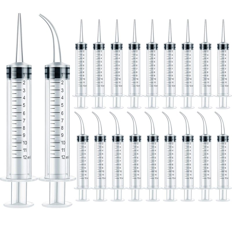 - Package content: there are 20 pieces of dental syringes in total, including 10 pieces of syringes with curved tip and 10 pieces of syringes with straight tip; Each syringe with a capacity of 12 ml; Enough quantity for your daily use, replacement and sharing with family and friends