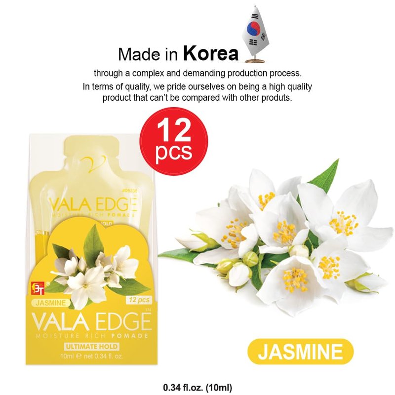12 Pack 10ml Vala Edge Control Braiding Gel Pomade Strong Hold High Shine Made in Korea Beauty Styling Gel (Jasmine)